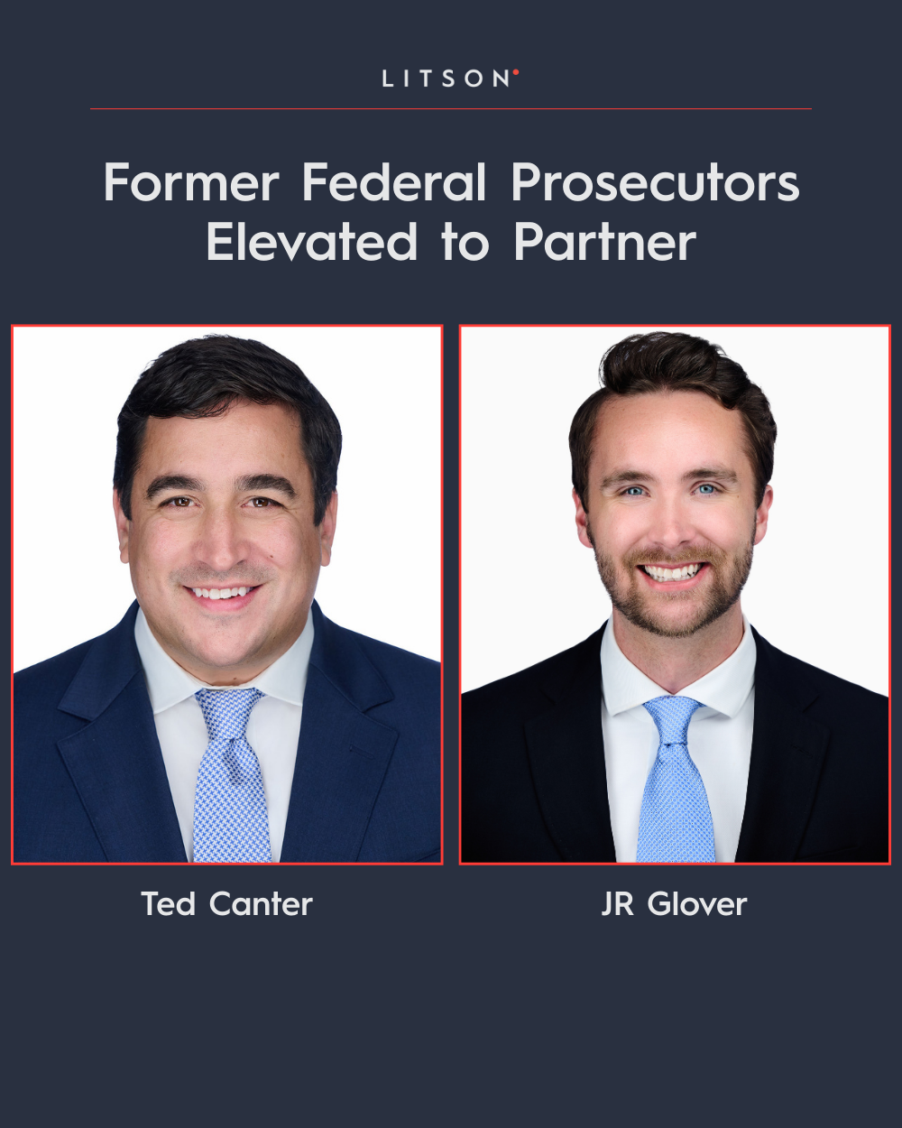 “Ted and JR have proven themselves as formidable advocates who understand government investigations from the inside,” said Alex Little, managing partner of Litson PLLC. “Their promotions reflect the depth of talent at this firm and our commitment to delivering the strongest possible defense for our clients.”